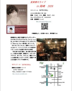 2026年6月27日(土)岡崎サテンドール(ソロライブ) Live 2026.03.312026.01.08 2026年6月27日(土)岡崎サテンドール(ソロライブ) 午後7時30分開演 今年も盛り上がりましょう! Screenshot